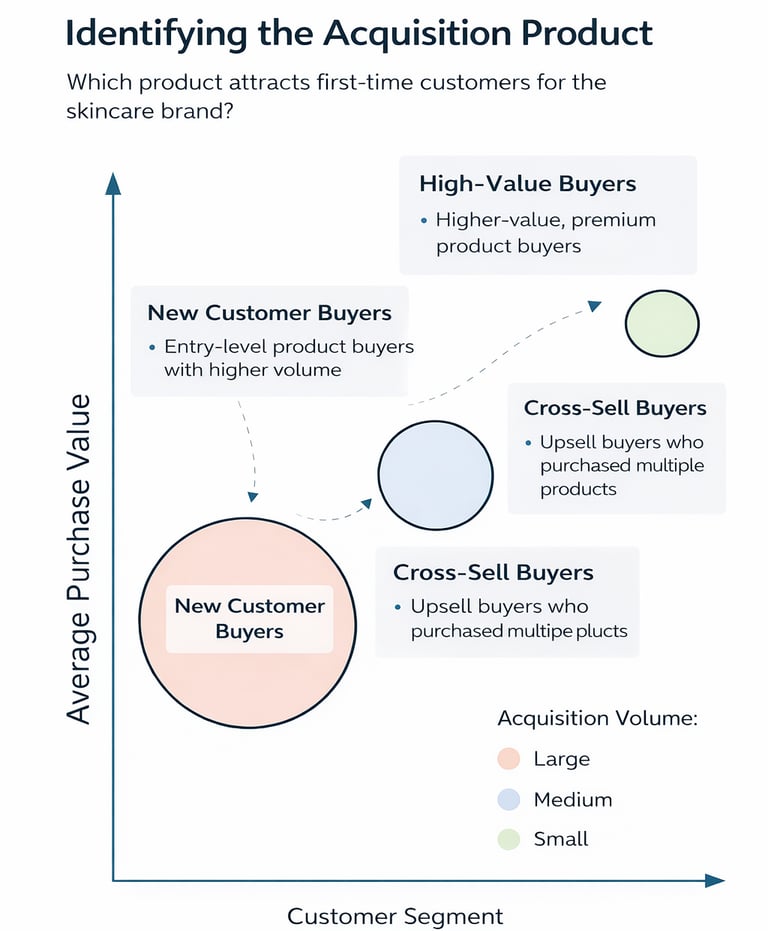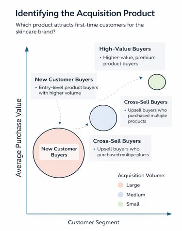 A local D2C skincare brand was investing in multiple products across paid campaigns, but lacked clarity on which item functioned as the primary acquisition entry point.